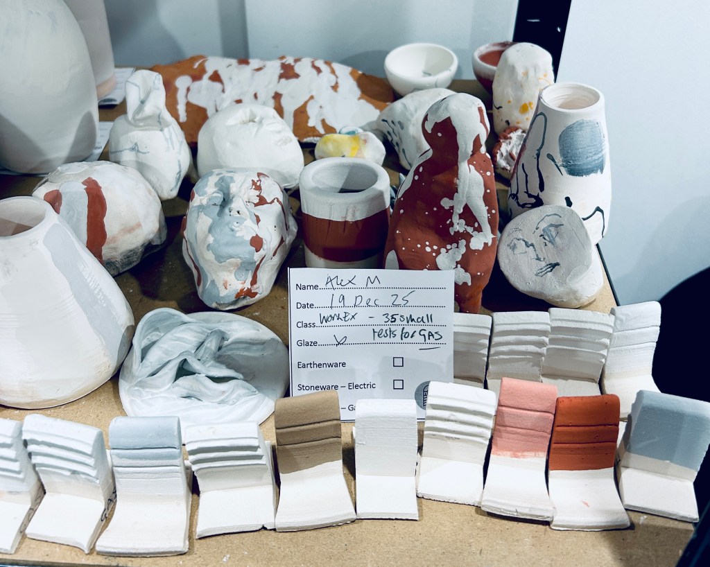I’m aware of ceramicists who have a performative element to their work.  My pal Shane Keeling climbs on ladders to drop his pots to the ground.  And the artist Vidya Thirunarayan I met at the talk recently incorporates raw clay into her dance performances.  There is more to explore there, but I notice I am not drawn to performing in my fine art practice.  The challenge for me is finding the place where my performance experience intersects with my ceramic practice, without ceramics becoming consumed into my performance practice.