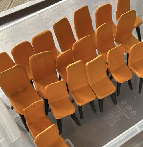 I have made lots of tiny orange chairs.  They have no visual or stylistic connection to the other bits.  Apart from municipal swimming pools.  They might be good to play with.