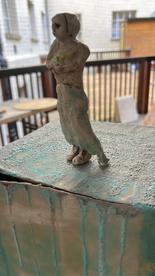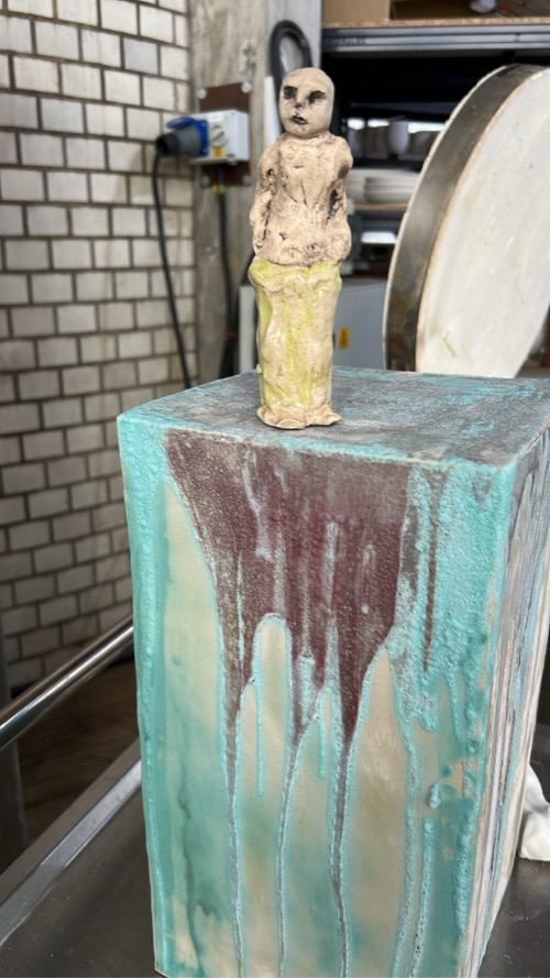 • my work, acceptable or not to the ceramicist world, to the art world, what does Gaby think, what does Collect 2026 think, that will be positive inspiration at least, but also overwhelming, my class is exploring ‘dérive’ and following their noses, it’s different to not be in the class I miss it, oh Trui arrives, she’s not in Italy, she’s bringing cakes and I forgot to pack snacks, theatre sets get thrown in a skip what a waste, what’s sustainable, damaged creative ceramic children, ah once again theatre has the answers for me, break everything and start again, it will be ok, why am I making this work that looks like theatre sets, that’s not ceramic art, then a guy walks in to the Gallery, he really enjoyed Collect will I be going (yes), look out for his work, he’s from Nova Scotia, Trui and I google him, Neil Forrest, oh look his work looks like theatre sets, little figures, I love ceramics, I hate ceramics.