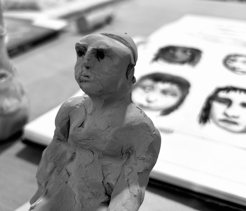 Yesterday I forgave the sorrowful kind of realistic figures I was making (which I am resisting because of what…taste, trends, some sense of what’s ok to do – and that literally nobody has told me not to do).  I just committed to them and I believed that if I endow them with seriousness and validity – then maybe they would have this.