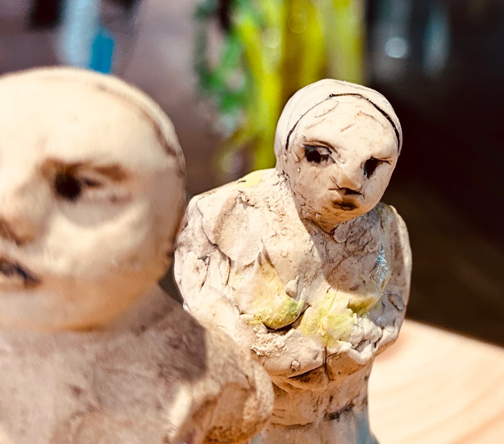 The interim show was a wonderful experience. I still feel strangely unattached to what I made although I feel I did resolve it successfully and the piece got a lot of positive responses. I want to understand why I feel so flat about it. But also, as art critic Jerry Saltz says – your art is a flatworm (earthworm in UK) – cut it in half and from it grows another piece. I love this idea. From the piece I made I am drawn to the the feeling of the figures – and perhaps I should commit to exploring the figure more – people / character is something I’ve studied hard as an actor / theatre maker. Story. The relationship with the audience. I also enjoyed the spatial dynamics, the setting of the multiple chairs. The box. I like the glaze. But why this material? Why clay?